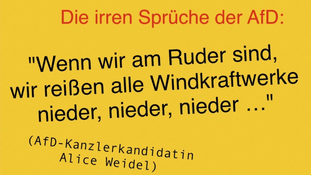 Wer für die AfD ist, steht für alles, was im Parteiprogramm dieser Partei formuliert ist. Er wird mit allen Sprüchen, Gehässigkeiten und Hetzereien der AfD-Chefin Alice Weidel und anderer Politikerinnen und Politiker identifiziert.